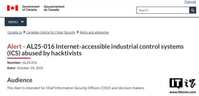 IT 之家 11 月 2 日消息,加拿大网络安全中心发布 AL25 - 016 通告,提醒业界近期有黑客对多地基础设施工业控制系统(ICS)发起攻击。这些系统普遍使用弱密码,且处于联网环境,极易被黑客攻击。