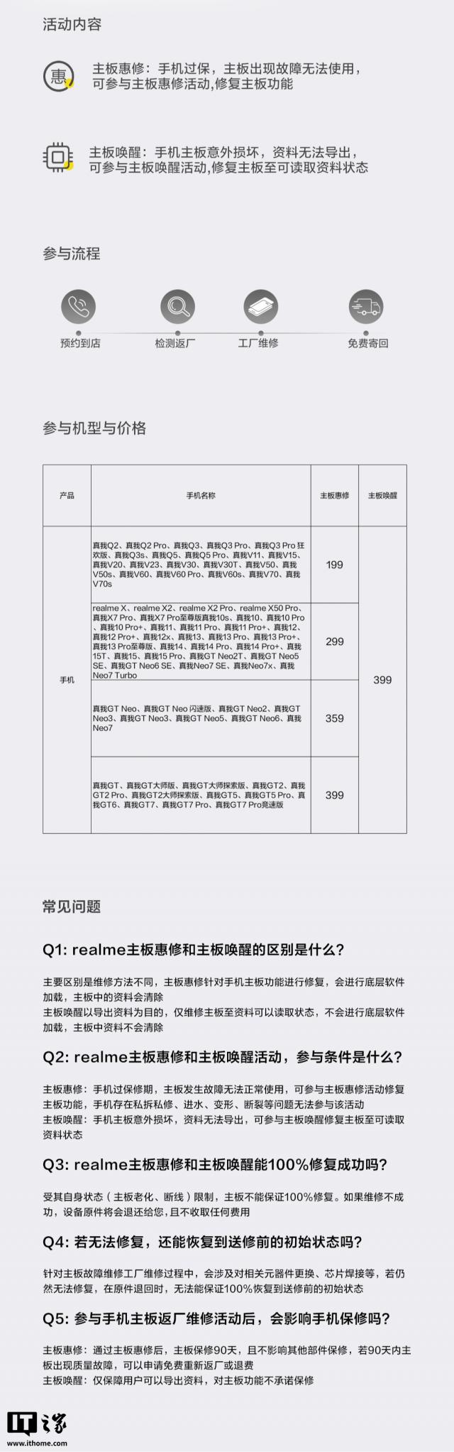 IT之家为大家附上真我手机主板返厂维修服务的重点内容如下: