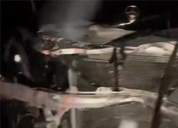 从现场画面能看到,事故车辆是一辆奔驰,车头严重损毁,黑熊倒在血泊中,当场死亡。
