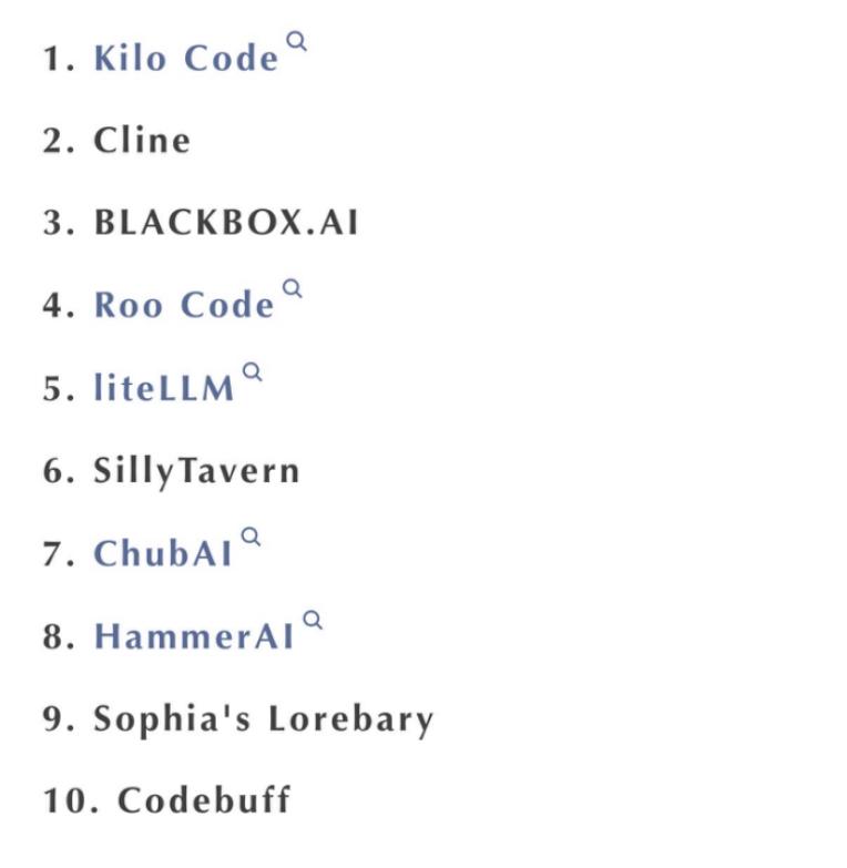 国内还在竞争的大模型厂商,也都“不约而同”地瞄准Coding这个确定性的战场。OpenRouter作为连接上百种大模型的全球大模型超市,平台上的模型调用量是全球开发者真金白银投出来的结果,也是目前最接近真相的“过滤器”。2025年9月,OpenRouter调用量Top10产品排名中,前5名有4家是Coding工具。