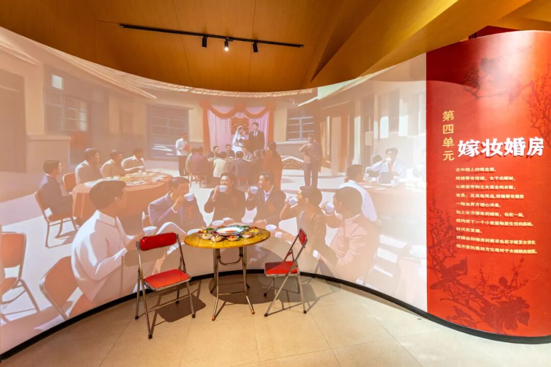 这里还原了上世纪80年代办喜宴的半景画情境,可坐在椅子上与大家举杯共饮,仿佛亲临喜堂,共享新人的幸福喜悦。