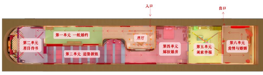 展览叙事分为六大单元,即一纸婚约、眉目成书、迎娶新娘、嫁妆婚房、阖家幸福、爱情与婚姻,展出313件(套)文物,到场可免费观展。