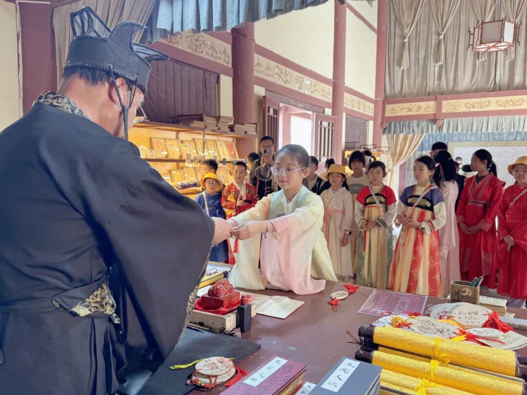 在阳关玉门关旅游区,能体验办理通关文牒,感受古代的繁荣商贸和独特的戈壁风光。西出阳关,通关文牒必不可少。在都尉府,官员们忙着为你办理通关手续,他们用工整的汉隶书,一笔一划郑重地写下你的名字,仿佛带你回到了汉唐盛世。