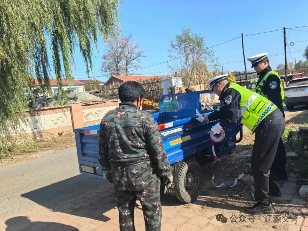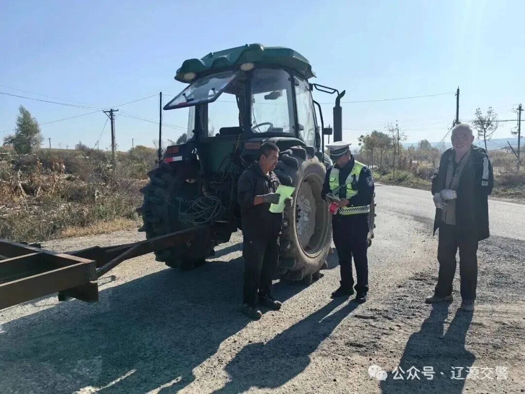 辽源交警开展“亮尾行动”,筑牢秋收安全防线