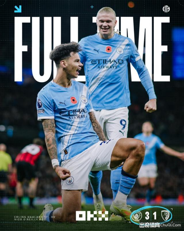 北京时间11月3日00:30,英超联赛第10轮曼城与伯恩茅斯的比赛在伊蒂哈德球场打响。上半场,谢尔基两次助攻哈兰德单刀推射破门,亚当斯在禁区混战中抽射得分,奥赖利错失良机,半场结束时,曼城2 - 1领先伯恩茅斯。下半场,奥赖利推射再下一城,多纳鲁马奉献精彩扑救,最终曼城3 - 1战胜伯恩茅斯,升至积分榜第2位,距离榜首6分。