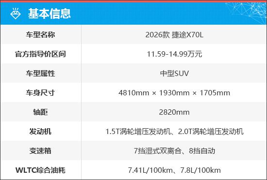 捷途X70L共推出5款配置车型,官方指导价在11.59 - 14.99万元之间。除入门车型外,其他车型均可选装7座座椅布局。同时,官方还推出了质保礼、置换礼等购车权益(详情可咨询当地经销商)。