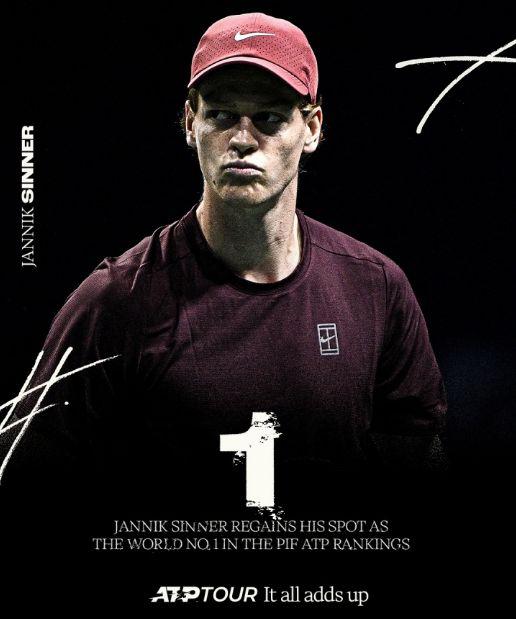其五,辛纳下周将超越阿尔卡拉斯,重返世界第一。