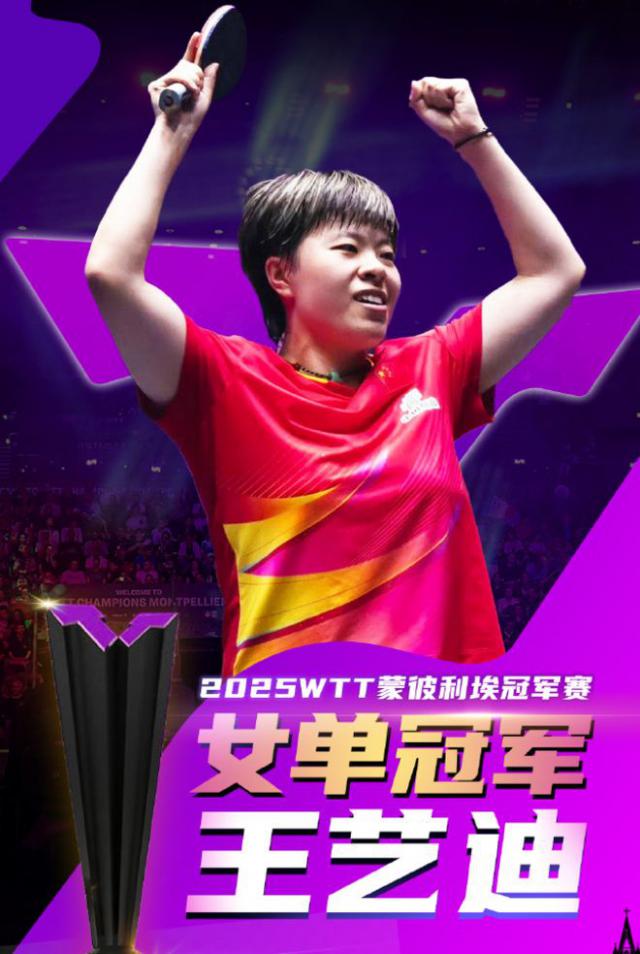 王艺迪在WTT蒙彼利埃站勇夺女单冠军,国乒至少将一个单打冠军收入囊中。王艺迪一人独守半区,着实不易。陈幸同、蒯曼首轮就遭淘汰,陈熠也止步八强,由此可见王艺迪背负的压力之大。