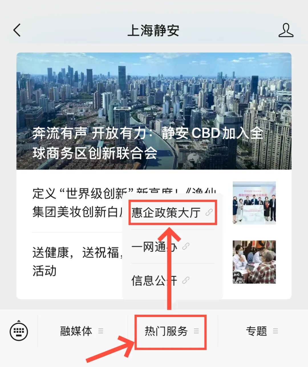 往期涉企政策与活动信息可前往“上海静安”微信公众号工具栏,点击“热门服务”—“惠企政策大厅”专栏查看。