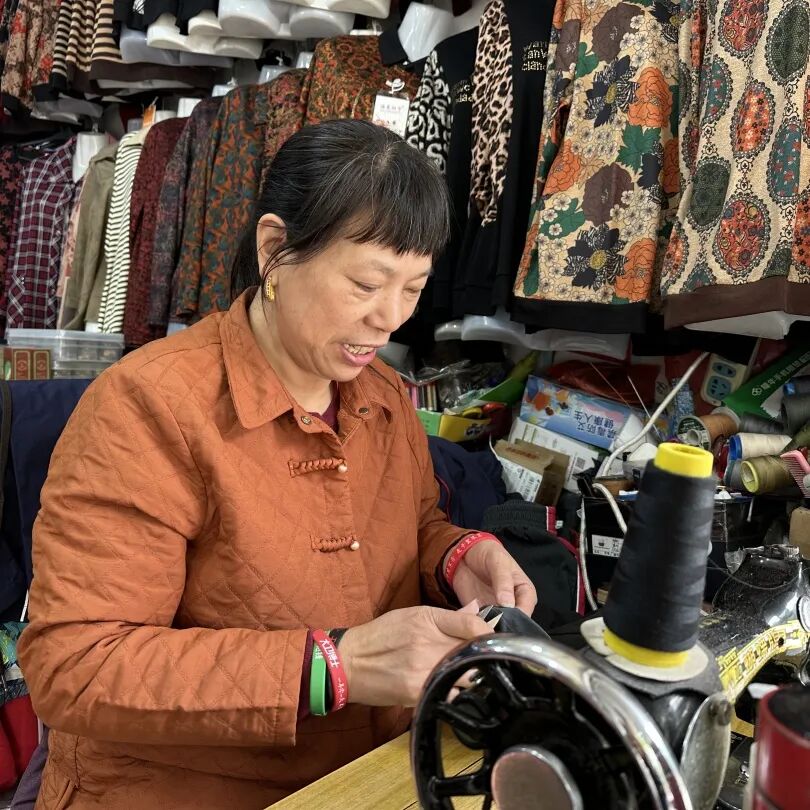 王阿姨今年61岁,手中的针线已“穿梭”了三十多年。她一口流利的本地话,让来缝补、买衣服的老人们特别喜欢和她聊天,没人能听出她的老家其实在江苏。常来的张阿姨说:“王阿姨的针脚又细又匀,补好的衣服根本看不出痕迹,比新买的还耐穿。”刚取完缝补衣物的李大爷也说:“不光手艺好,人还热心,有时候多聊两句,她还会主动帮忙修修衣服上松动的扣子。”