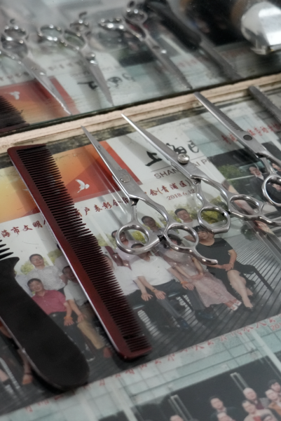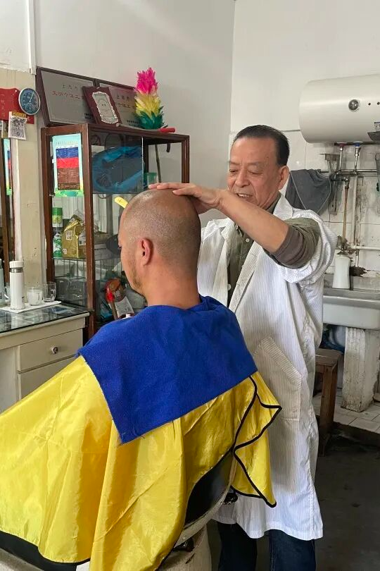 戴师傅手艺精湛,理发动作干净利落,不一会儿就能为顾客剪出清爽造型。刮面、剃须等老技艺在这里得以传承,那原汁原味的触感令人回味。四十余载时光流转,他以匠心服务了一代又一代居民,既守护着老派理发技艺的温度,也珍藏着邻里间的温情回忆,成为小镇上一道治愈人心的风景。
