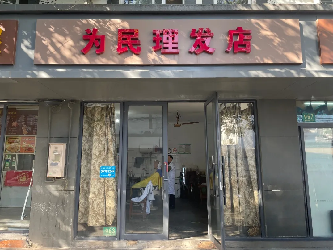 在重固镇大街963号,一家老式“剃头”店静静伫立。自1979年起,戴师傅就在此坚守,用一把剪刀、一柄推子、一把剃刀,为居民们打造新形象。“为民理发店”的门牌、整齐排列的传统理发工具、复古座椅,处处都刻着时光的印记。