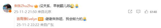 随后,朱珠留言表示“没关系”。