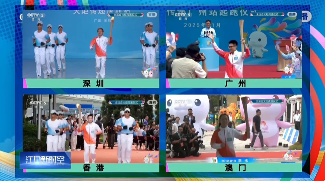 11月2日上午,第十五届全国运动会火炬传递在香港、澳门、广州、深圳四城同步举行。这是全运会历史上首次跨境火炬传递,粤港澳三地以圣火为纽带,奏响了大湾区融合发展的新乐章。