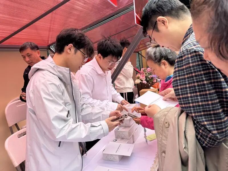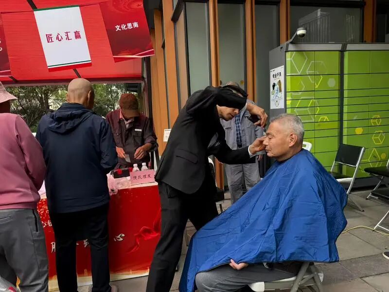 活动现场气氛热烈,居民们纷纷在各个摊位前驻足。志愿者们耐心地为居民解答问题、提供服务,中医义诊、便民理发、磨刀、手机贴膜等摊位前都排起了长队,得到了居民们的一致好评。