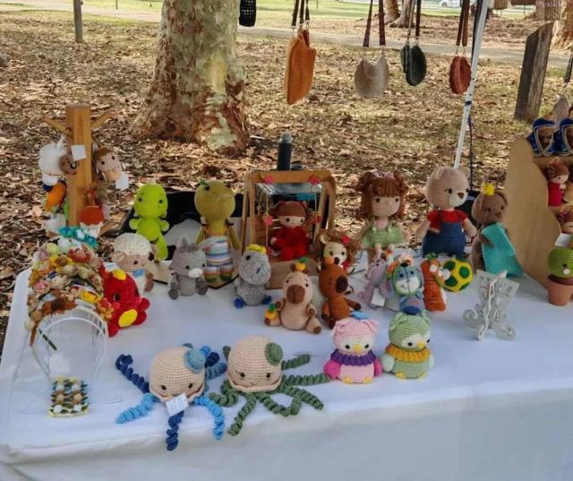 楼下的小集市只在周末开放,从早上九点到下午两点,是个典型的巴西手工艺市场。摊主们带着自己做的玩偶、画作、小饰品,悠闲地摆摊、聊天,音乐声、笑声混在空气中,宛如一场慢节奏的节日。