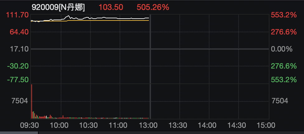 新股丹娜生物上午盘中一度大涨553.22%