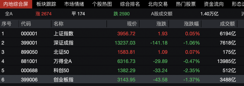 今日上午,A股市场整体处于低位震荡,盘中一度有近3000只个股下跌。上证指数盘中一度跌幅接近0.5%,但临近上午收盘时成功翻红;创业板指盘中一度跌幅超过2%,截至午间收盘,跌幅收窄至1.37%。