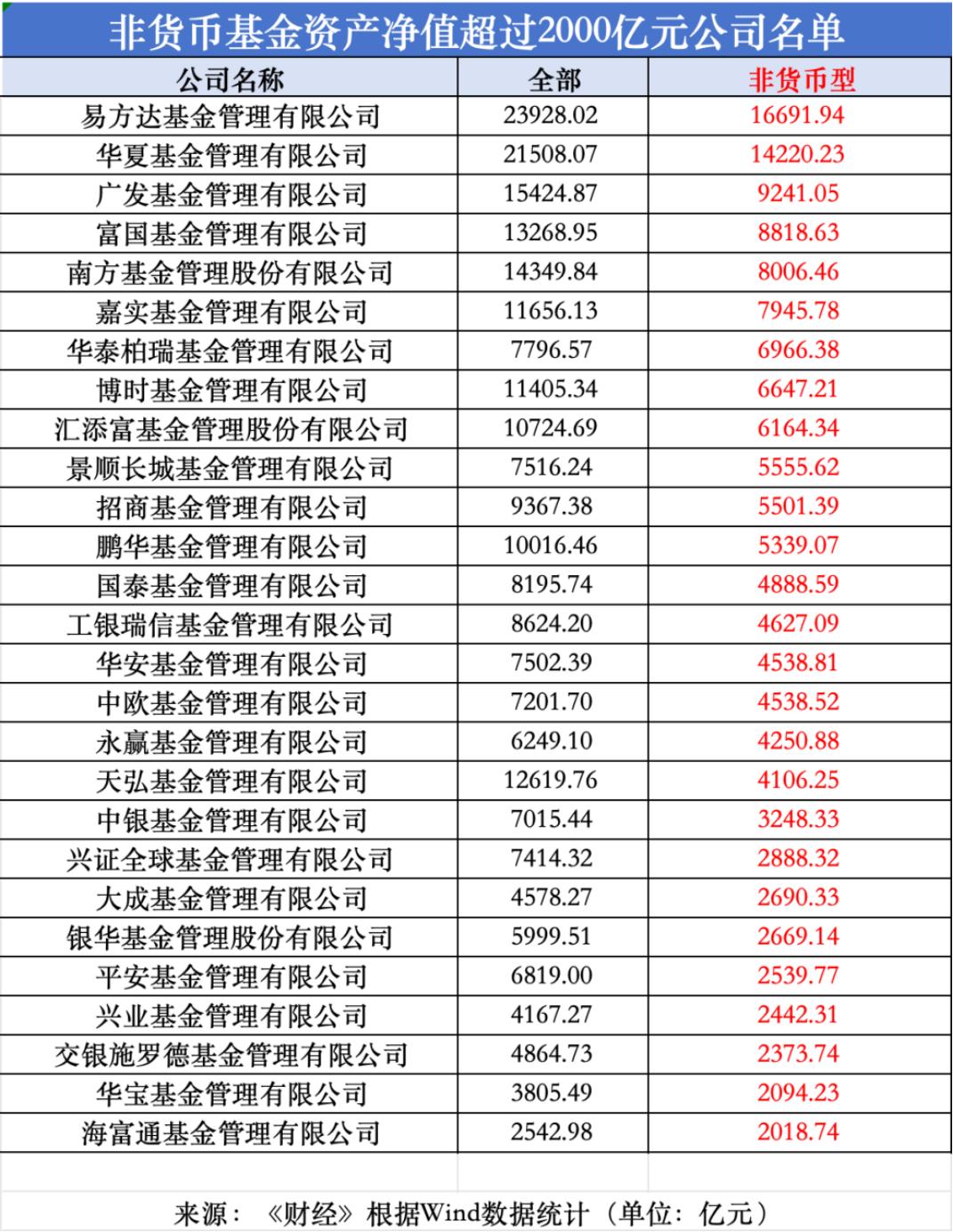 中欧基金以17.32%的增幅领先,规模增长超千亿元,主要增量来自权益类基金净值增长和货币基金净申购,但权益类基金份额与上季度基本持平。