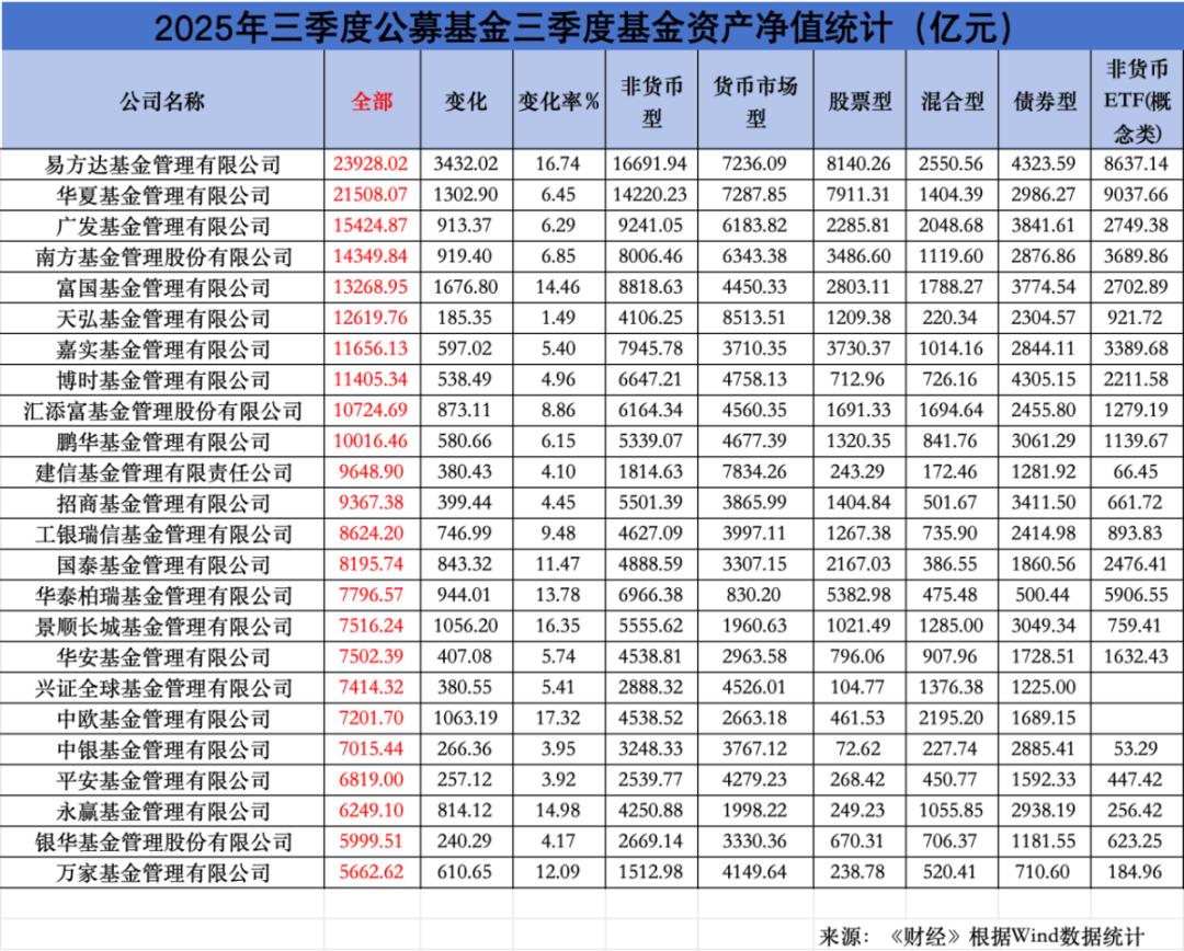随着2025年公募基金三季报披露结束,行业整体规模再创新高,但内部竞争格局已发生巨大变化。