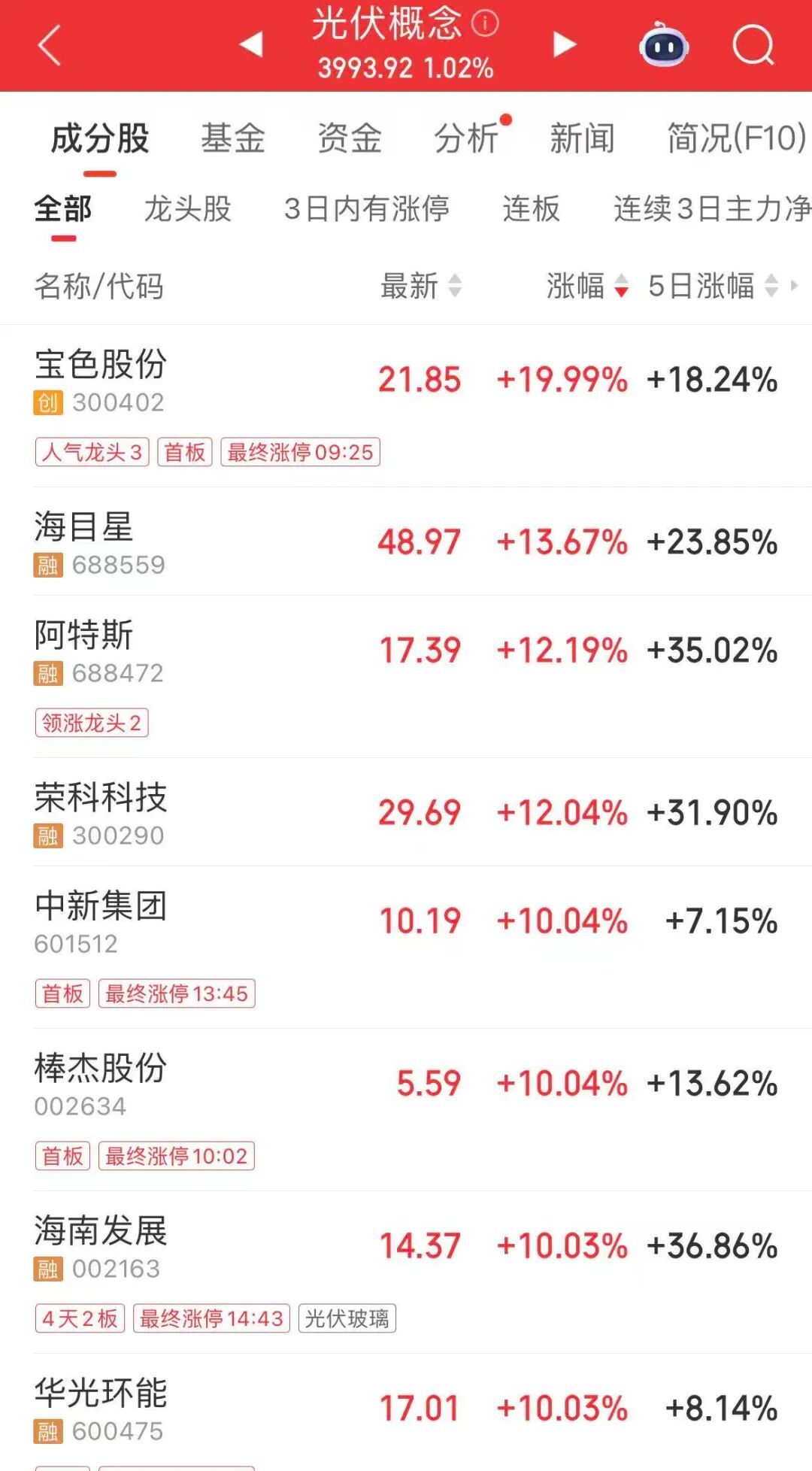 光伏设备板块午后持续走强,阿特斯涨幅超12%。阳光电源上涨5.09%,总市值约4135亿元,成交额为196.85亿元,位居A股第一。