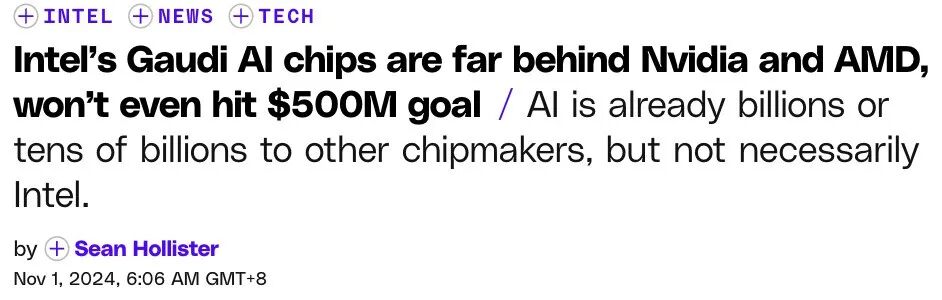 此前,英特尔推出的Gaudi系列未能撼动Nvidia和AMD在该领域的领先地位。