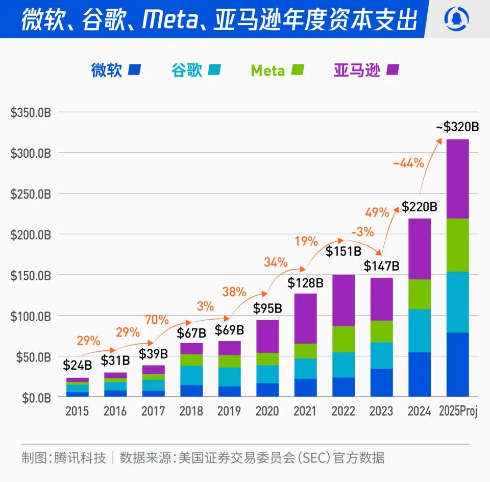 更糟糕的是,一次性约159亿美元的税费冲击,使GAAP每股收益仅为1.05美元,远低于市场预期。财报发布后,股价大幅下跌,两个交易日跌幅超13%,市场质疑“天量投入何时能有回报”。