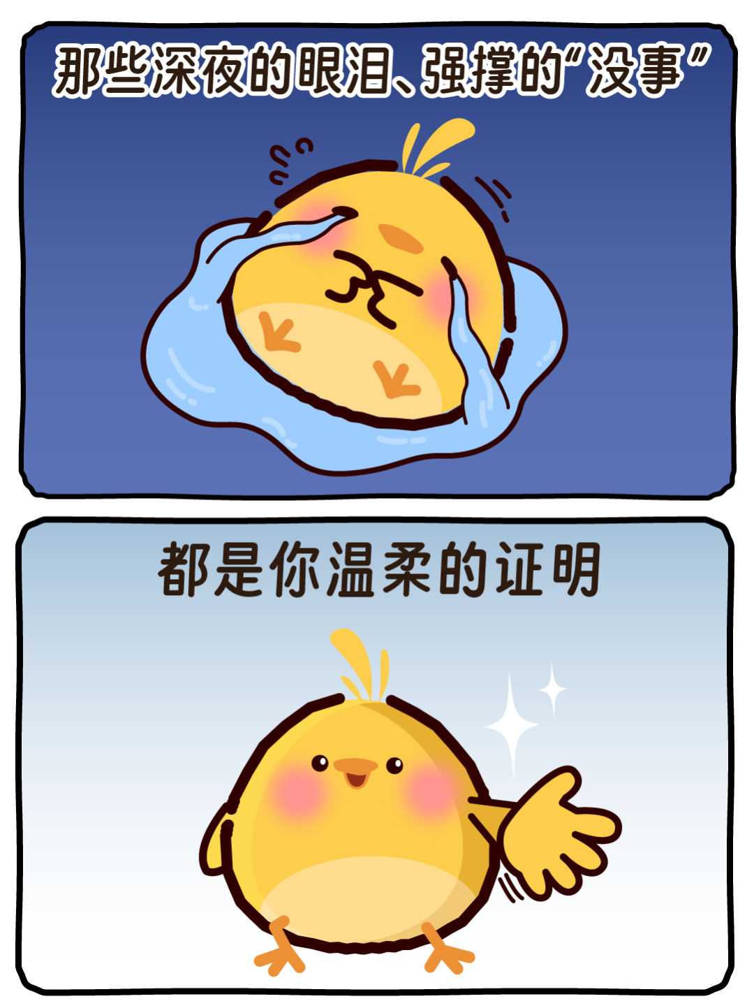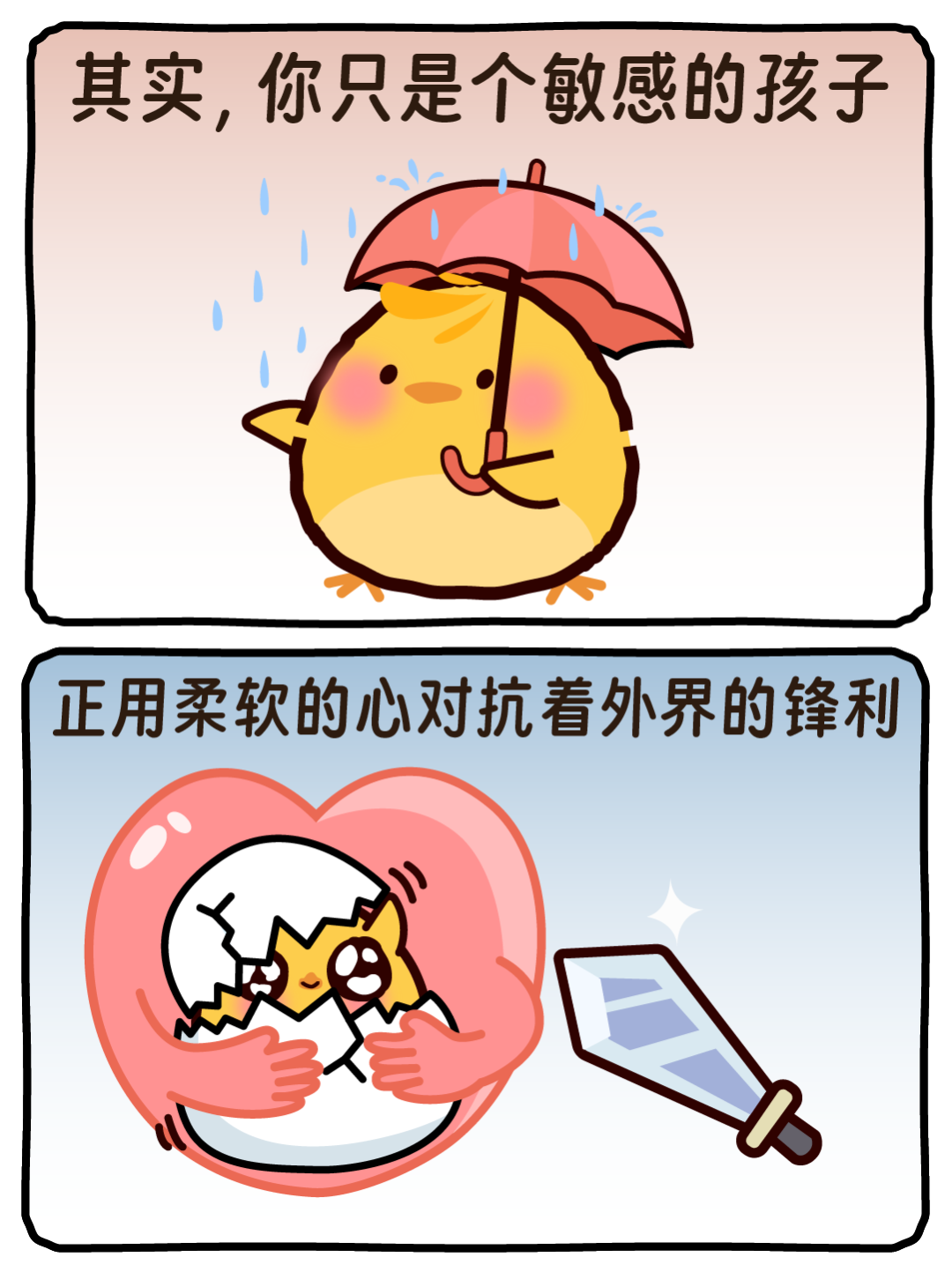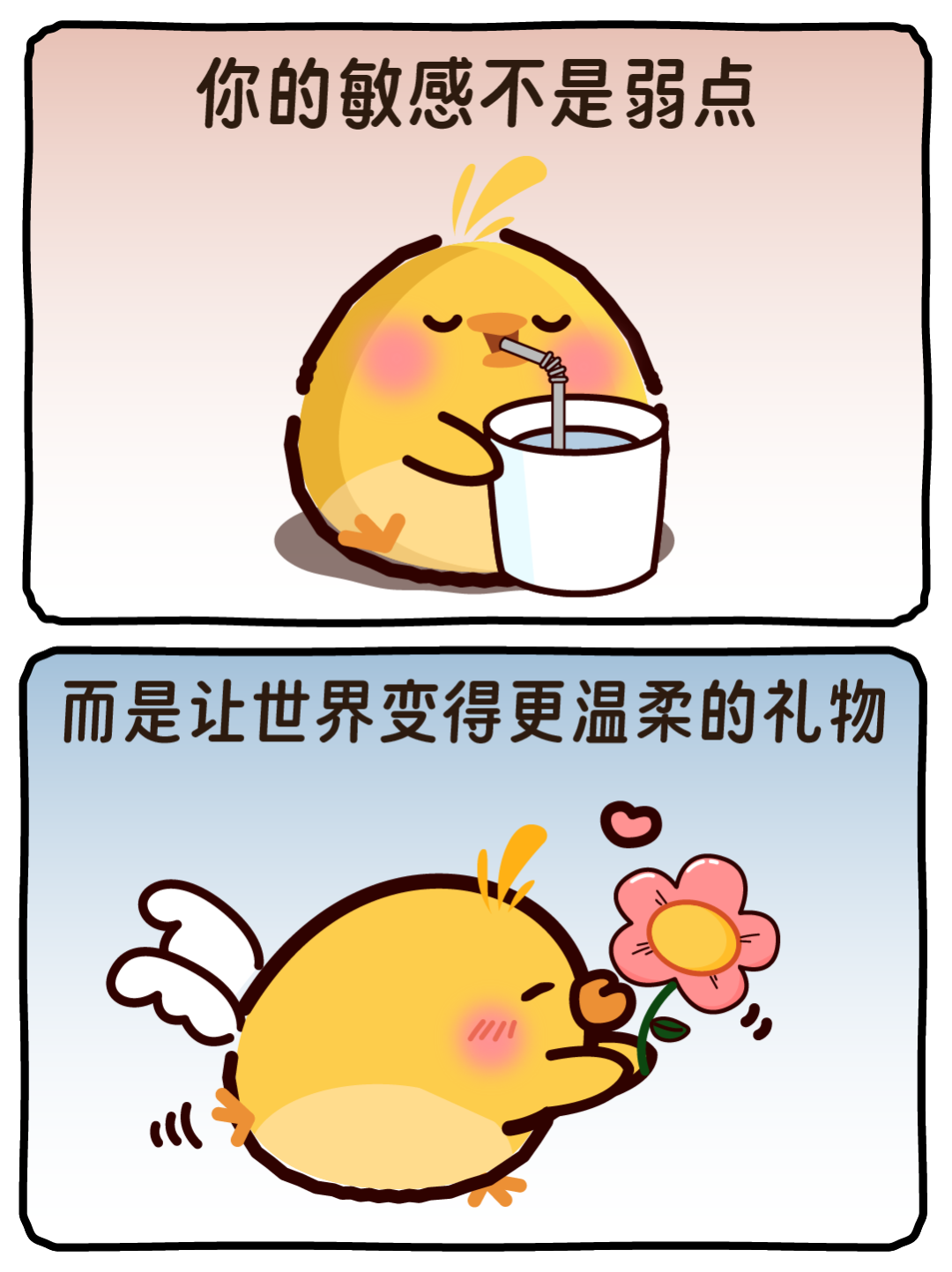你会想哭,也会情绪低迷。但我想告诉你,爱哭没什么,会害怕也很正常,你只是比较敏感而已。敏感并非弱点,而是一种天赋。你走的每一步都无比勇敢,你就是最棒的自己。