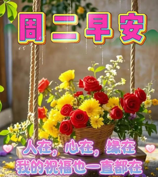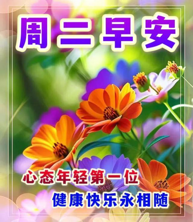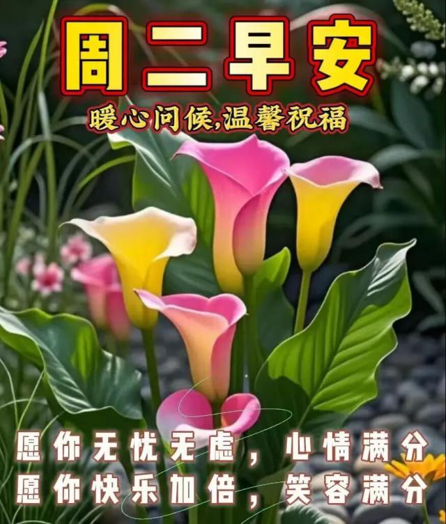 周二早上好!愿你今日心情愉悦!睁开双眼,送上一份轻轻的祝福,愿它每时每刻都带给你健康、好运与幸福。希望你度过美好的一天!
