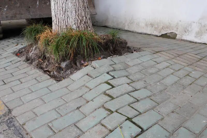 据了解,富民新村2号门至东贤路两侧的人行道,由于沿线树木生长年限较长,根系不断向外延伸扩张,导致上街沿路面地砖被逐渐拱起,形成了高低不平的“波浪状”。居委会在接到居民反映后,及时将情况整理上报。