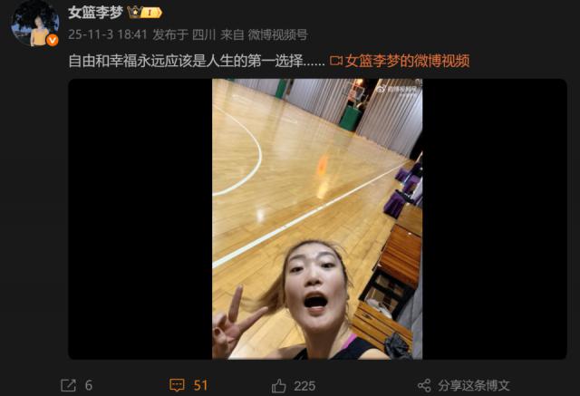 国家队大门暂时对李梦关闭,但她的个人生活并未受影响。在四川全运会女篮开赛仅剩4天之际,她在社交媒体分享生活。11月7日,四川队将对阵山西队,此时李梦发文“自由和幸福永远应该是人生的第一选择”,意味深长。她分享的照片中,有数字3的气球摆设浪漫,外界认为是其男友张隆准备。两人感情公开多年,历经风波依旧稳固。退出国家队后,李梦专注四川女篮,目标是带领球队在全运会上夺冠。