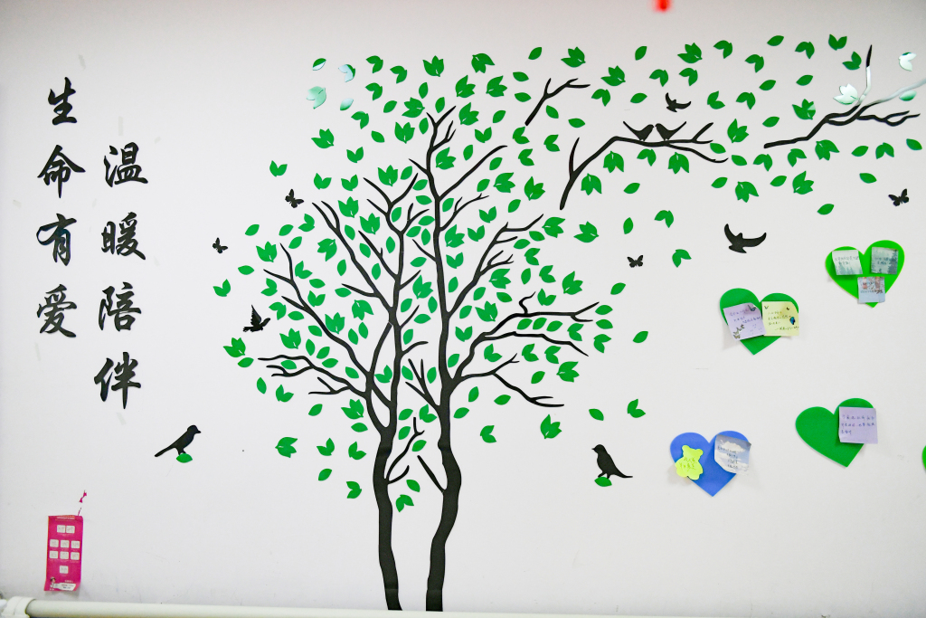 复旦大学附属肿瘤医院综合治疗科病房墙上还画了一棵生命树。下图均为复旦大学附属肿瘤医院 王懿辉 摄