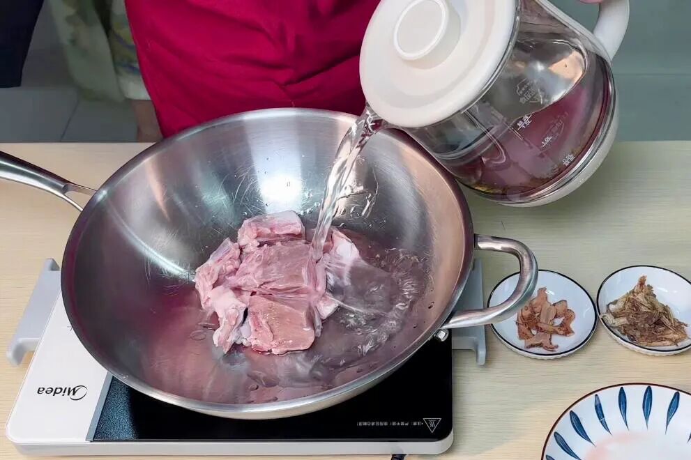 3. 先用武火将汤煮沸,然后转成文火慢慢炖煮,一直到羊肉变得酥软为止。