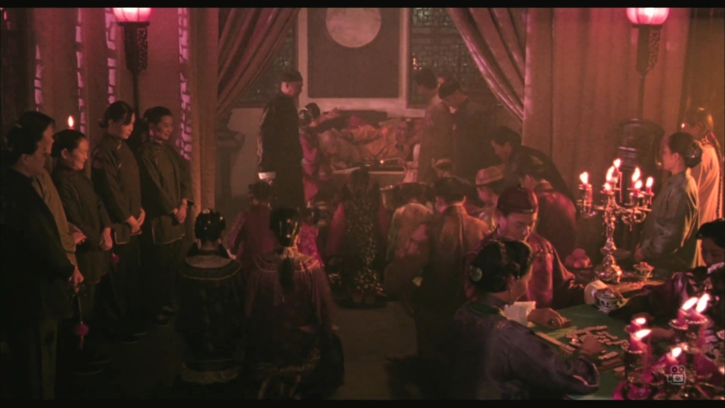 宫泽理惠和王祖贤唱完《皂罗袍》去给姥爷拜寿的厅格局独特,厅里石屏风和罗汉榻原汁原味。这场戏用的布帘是侯孝贤拍《海上花》的道具。戏中老爷抽鸦片,姨太太打麻将。