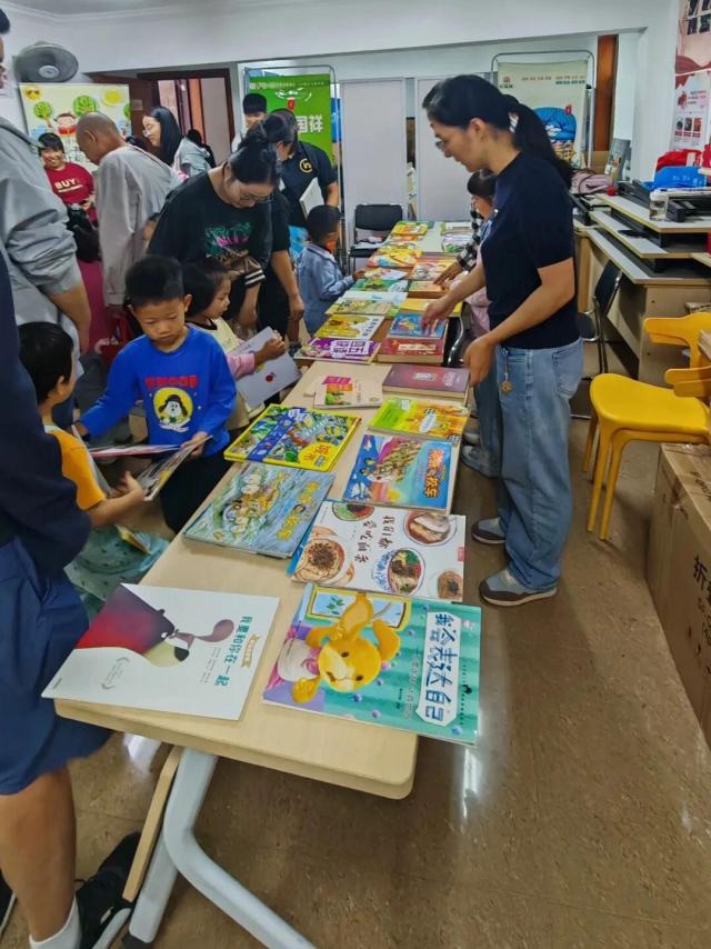孩子们有的兴奋地踮着脚向小伙伴介绍自己的书:“这是《恐龙百科》,里面有好多厉害的恐龙!”有的则在摊位前认真翻阅,寻找自己喜欢的“新朋友”。在家长和党员志愿者的引导下,孩子们主动交流、礼貌地交换书籍。原本闲置在家的绘本、童话书、科普读物,在孩子们的小手中传递,成了连接友谊的“纽带”。“我换到了《海底总动员》,这是我一直想看的书!”刚完成交换的小朋友举着新书,满脸都是喜悦。23组家庭全程热情投入,不仅让每本闲置书籍有了新主人,还让孩子们在交换过程中学会了分享、懂得了沟通。