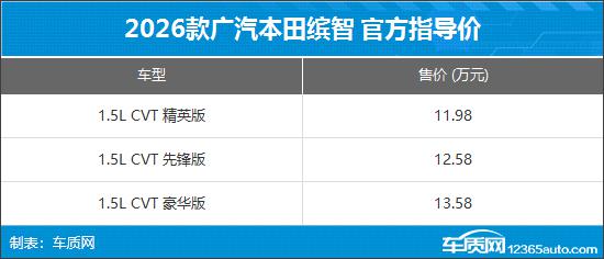 2026款广汽本田缤智上市,售价11.98 - 13.58万元