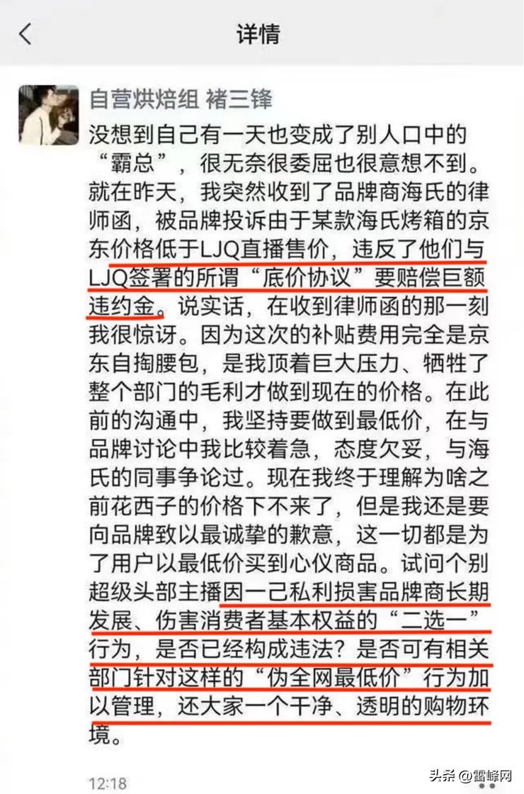京东采销人员曾在朋友圈发文质疑头部主播“底价协议”式“二选一”行为是否构成违法,图片来自媒体报道