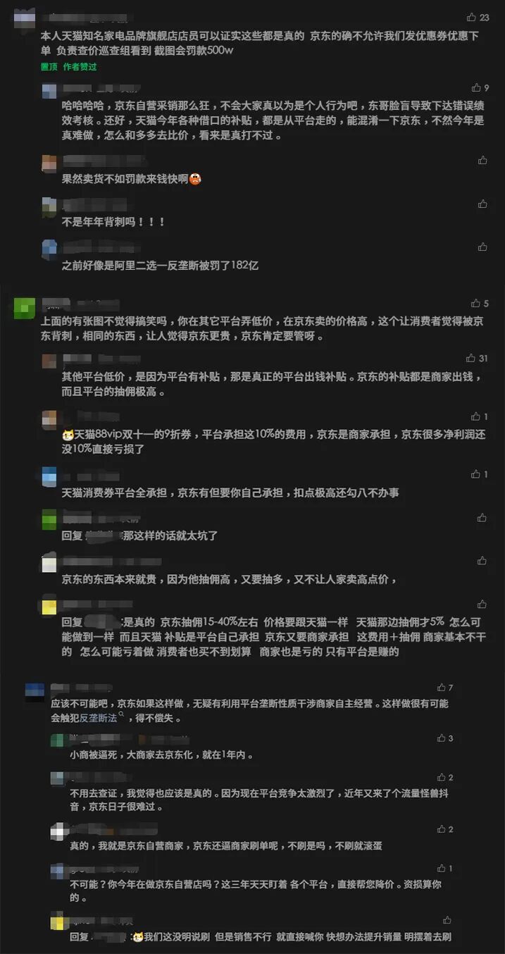 浪潮新消费发布《这个双11,商家被京东背刺》的报道后,收到众多商家的留言反馈,有证实也有质疑,更多的是商家们积怨已久的倾诉: