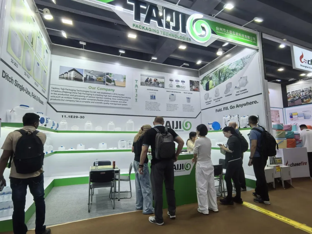 本次广交会上,太极包装推出的背包式折叠水袋成了焦点。它外观像书包,不用时能卷起来存放,装满水背在身上,能根据人的身形体态完美贴合背部,舒适度很高。