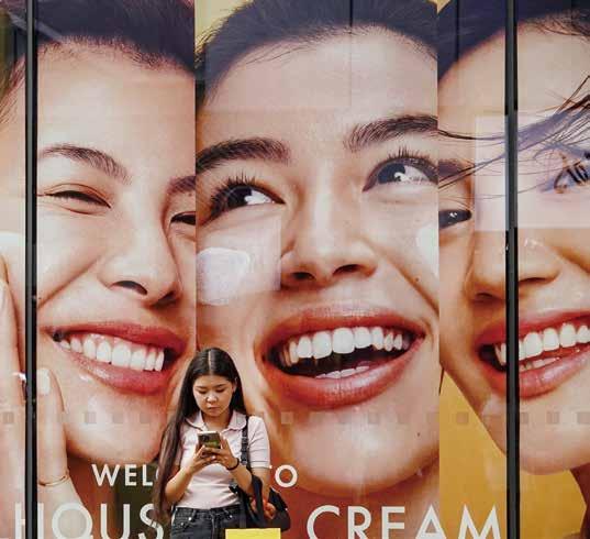2024年8月18日,北京三里屯。一名女性在海报墙前看手机。(图/CFP)