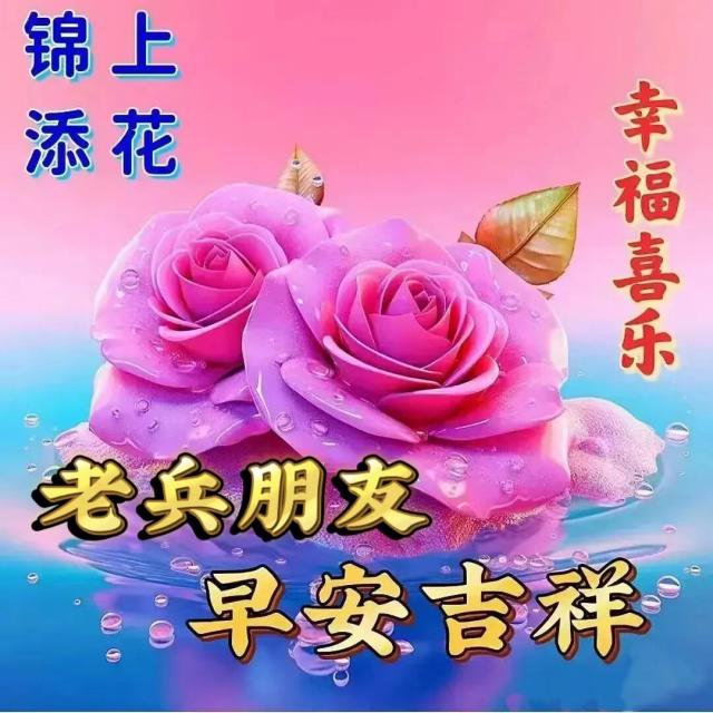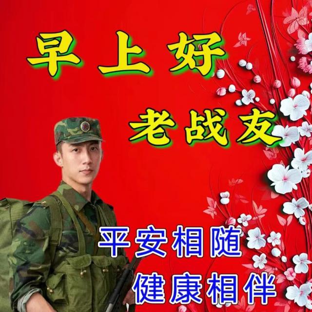 一份贴心的问候,传递着快乐与甜蜜;一份真心的祝福,传递着幸福与美好;一份简单的快乐,传递着我们老战友之间的深情厚谊。愿老战友们身体健康,事业蒸蒸日上!早上好!