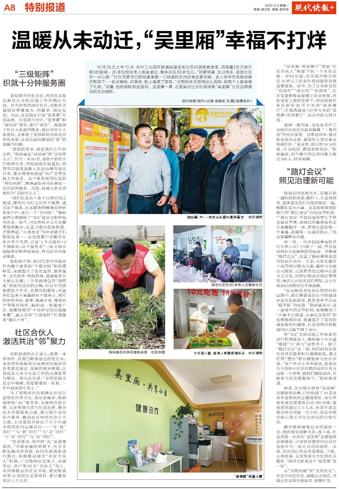 ◈ 《现代快报》整版关注园区:温暖从未动迁,“吴里厢”幸福不打烊。
