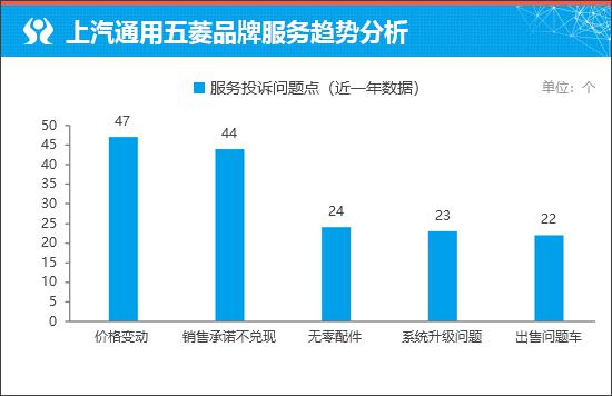 服务投诉主要集中在“价格变动”和“销售承诺不兑现”方面,涉及五菱星光、五菱缤果和宏光MINIEV等车型。
