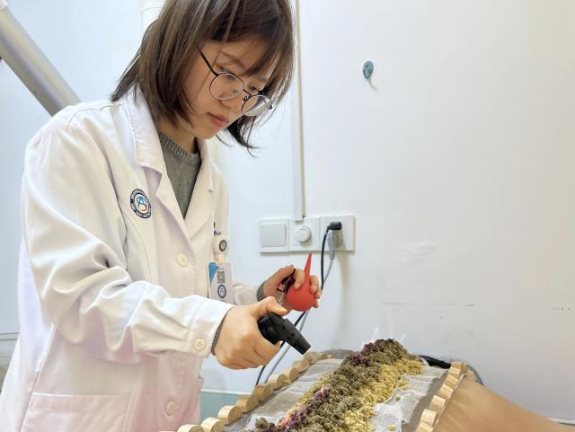 记者发现,火龙灸并非简单的艾条熏烤。它是在患者背部督脉(脊柱沿线)上铺上生姜末等材料,再堆上艾绒点燃,将灸法的热力与药物的渗透相结合,整个治疗过程约30分钟。该疗法被誉为“温阳第一法”,也叫“督脉灸”,能有效激发阳气,增强免疫力。建议每周进行1 - 2次,以达到温通经络、祛寒除湿的效果。