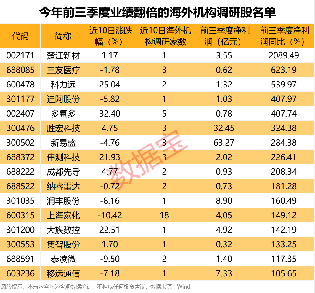 海外机构调研股新鲜出炉,16股业绩呈现暴增态势