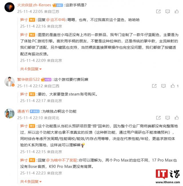 目前盖世小鸡官方暂未公布这款新品手柄的信息,不过从小米REDMI产品经理笋寸的分享来看,该手柄后续将会上市,同时有望提供REDMI定制牛仔蓝配色,并适配K90系列手机的PC游戏引擎。关于新品的后续信息,IT之家将持续关注并第一时间带来最新情报。