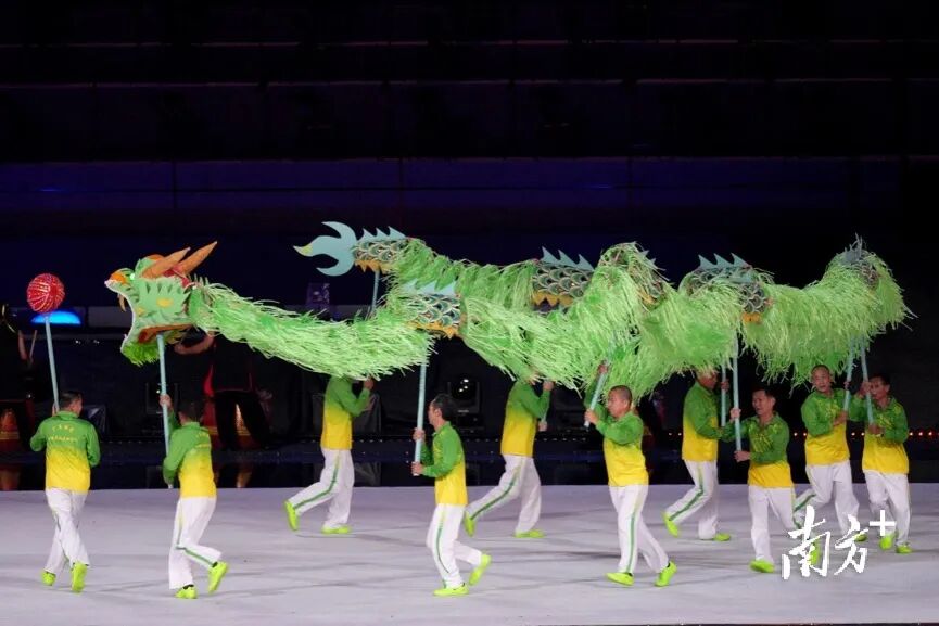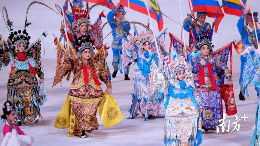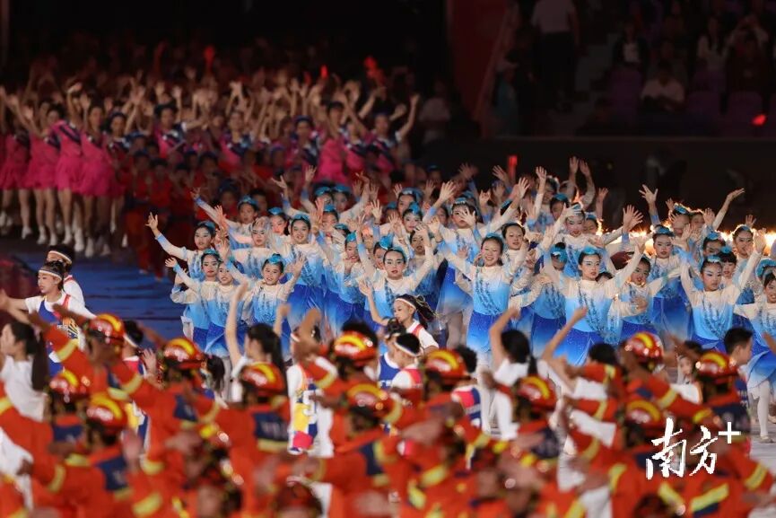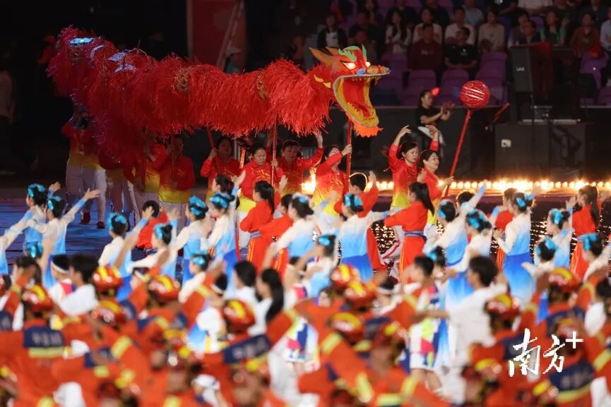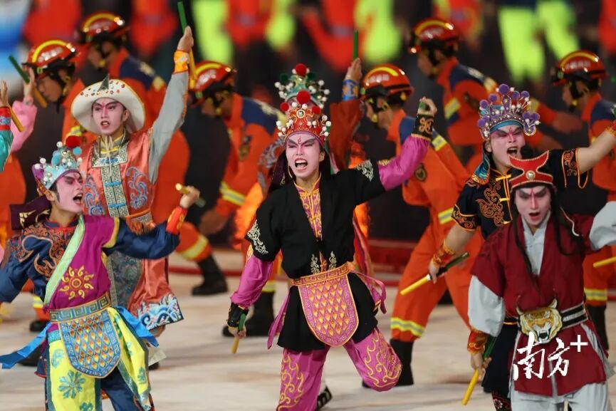 暖场表演四个篇章由33家演出单位完成。节目巧妙融入舞狮、粤剧等岭南非物质文化遗产元素,以现代表演形式呈现,让表演“潮”起来,展现岭南文化底蕴与时代气息交融的魅力。