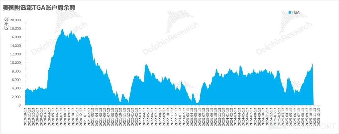 这些资金融入后,由于政府关门无法发放给实体经济,只能躺在美联储的账户上,这使得财政部实际上变成了只进不出、吸食流动性的“貔貅”。