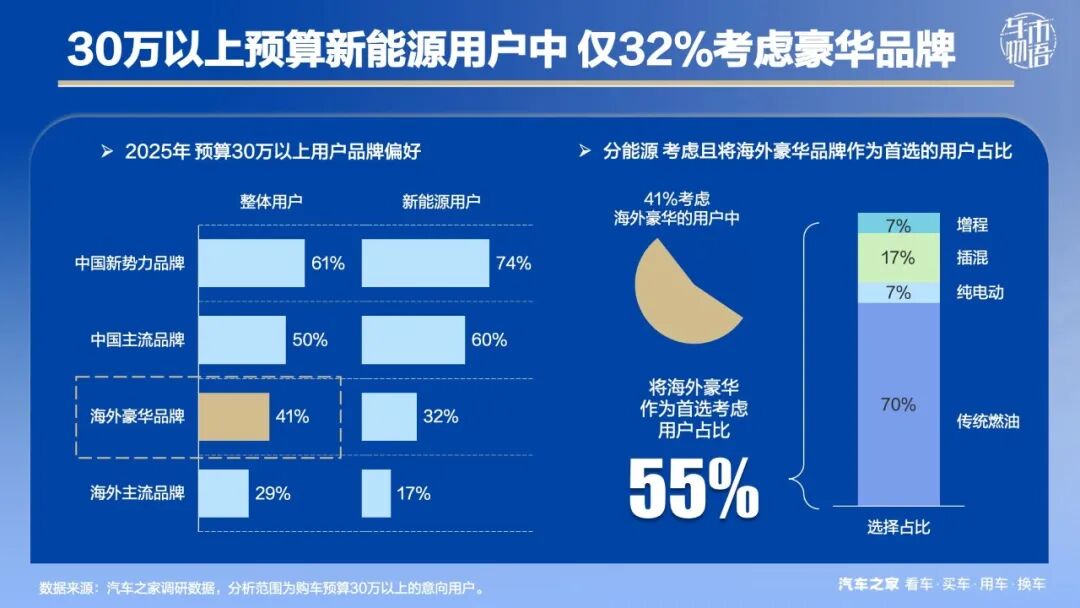 预算30万以上新能源用户,仅三成考虑豪华品牌