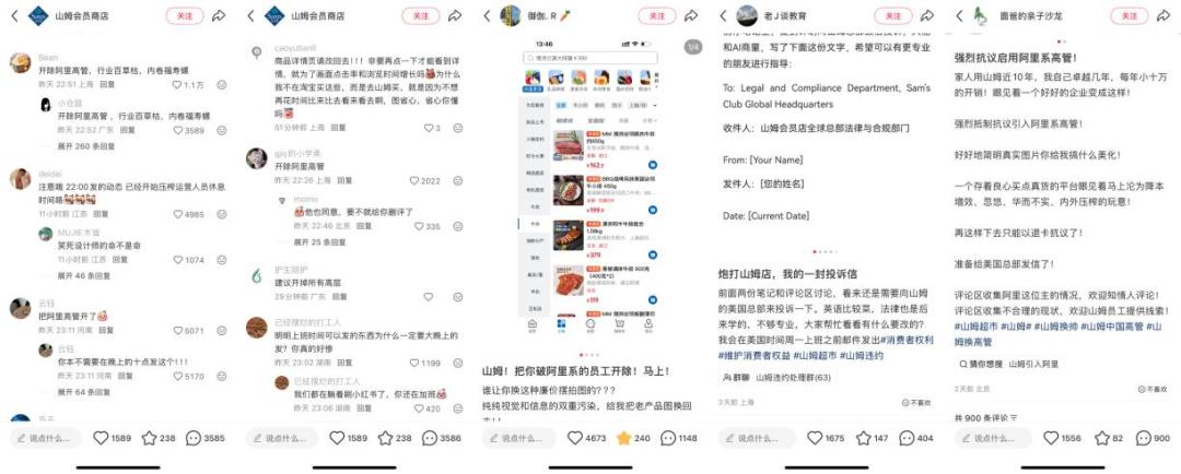 这一改动迅速“点燃”了本就不满的用户,他们认为刘鹏带来了“阿里味”,山姆官方小红书账号的评论区被“辞退阿里高管”刷屏,相关词条冲上热搜。